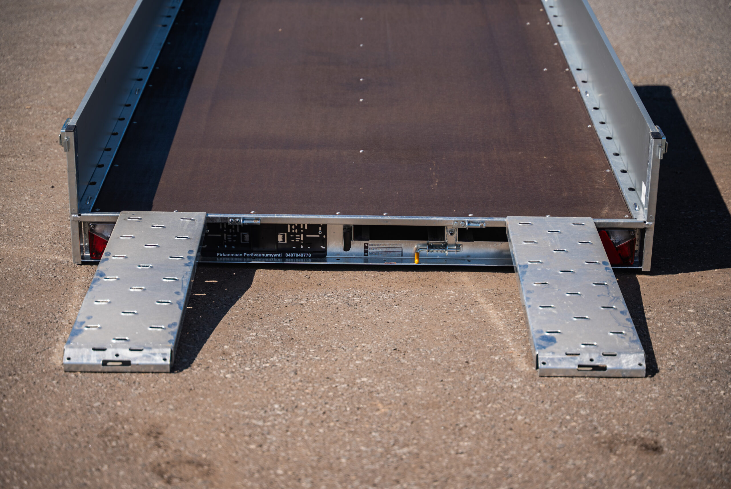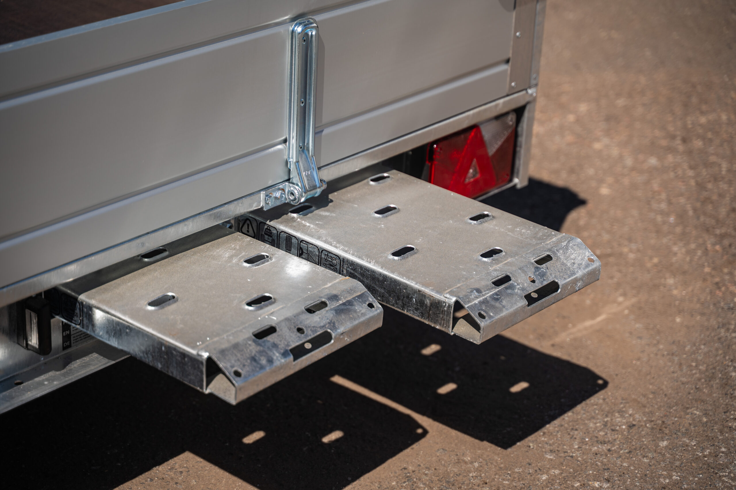 Ulosvedettävät 1300 mm alumiiniset ajorampit kulkevat näppärästi mukana lavan alla.